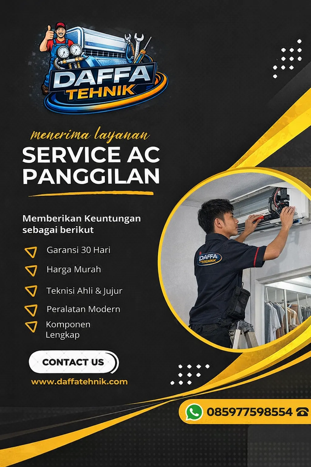 Selamat datang di daffatehnik.com, tempatnya solusi terbaik untuk semua kebutuhan AC Anda! Kami, di daffatehnik.com, hadir dengan komitmen kuat untuk memberikan layanan berkualitas tinggi dan menyeluruh dalam dunia perawatan, instalasi, pengadaan dan perbaikan AC di wilayah Jakarta, Tangerang, Bekasi, Depok, dan Bogor.